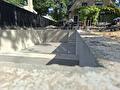 Het bad is volledig geïntegreerd in het lijnenspel van de tuin, met veel aandacht voor privacy en ontspanningshoeken in zowel zon als schaduw.
